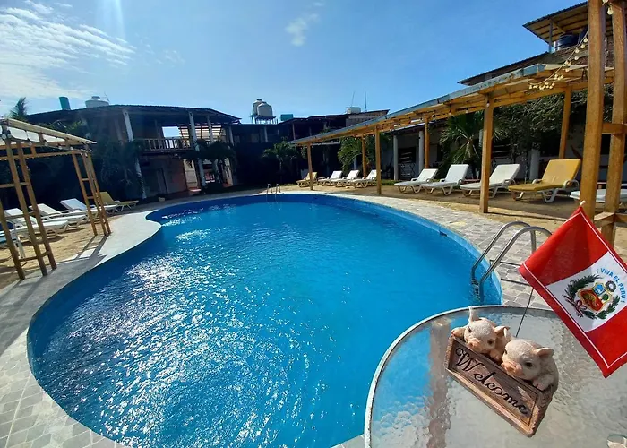 Com solário, terraço ensolarado e sinuca, e vistas para a piscina, o Mancora Y Sol Hotel de 2 estrelas está localizado a apenas 10 minutos a pé da Máncora. Os hóspedes deste hotel livre de fumaça podem relaxar na piscina aquecida e tomar suas bebidas no bar da piscina.